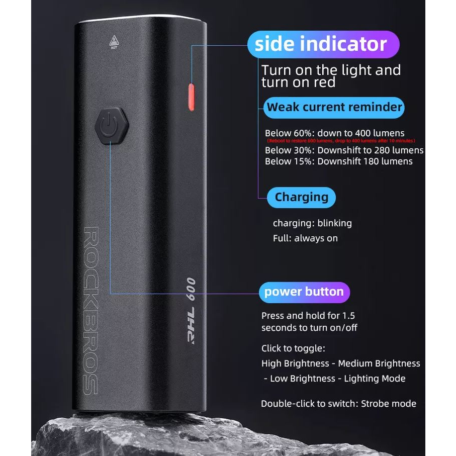 [SG SELLER] ROCKBROS Bicycle light Headlight USB Type C Rechargeable Cycling Bike Front Light Bicycle Accessories
