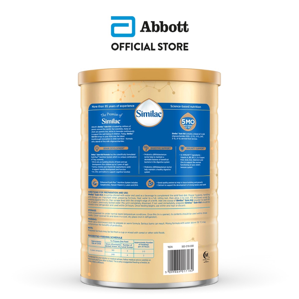 [Twin Pack] Similac Gain 5MO Stage 4 Kid Pre-school Milk Powder Formula 1.8kg (3 years onwards)