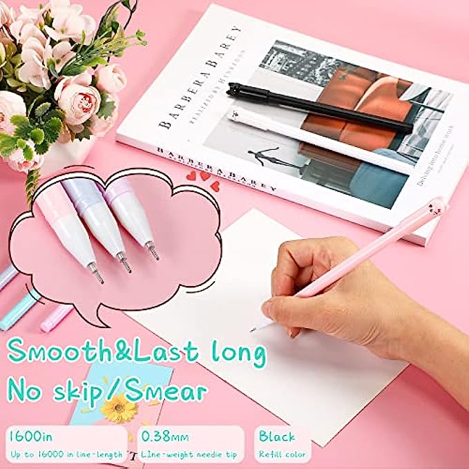 Cute Cat Ink Pens: these cat ink pens are 6 colors, adorable and creative; Plastic pen shell, lightweight and portable, not easy to break or distort, very convenient to be put in handbag; Each 0.5 mm/ 0.02 inch pen tips provide you smooth writing effect, can be applied for a long term