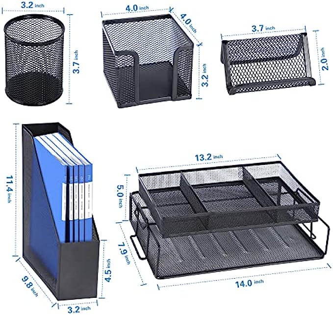 6 Pcs Desk Organizers and Accessories, Mesh Desk Organizer Office Supplies with Business Card Holder Desktop Organizer with Paper Tray/Pen Holder File Organizer for Desk Accessories for Home & Off