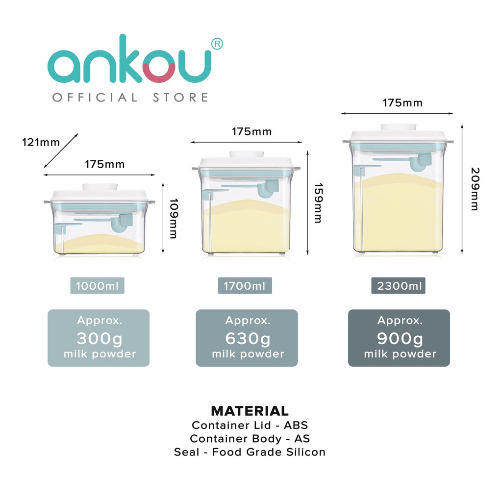 ANKOU AirTight Milk Powder Container with Scraper - Rectangle Clear(1000ml/ 1700ml/ 2300ml)