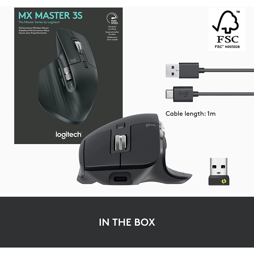Logitech MX Master 3S Silent Wireless Mouse with Ultra-fast Scrolling, Ergo, 8K DPI, Track on Glass, Long Battery Life