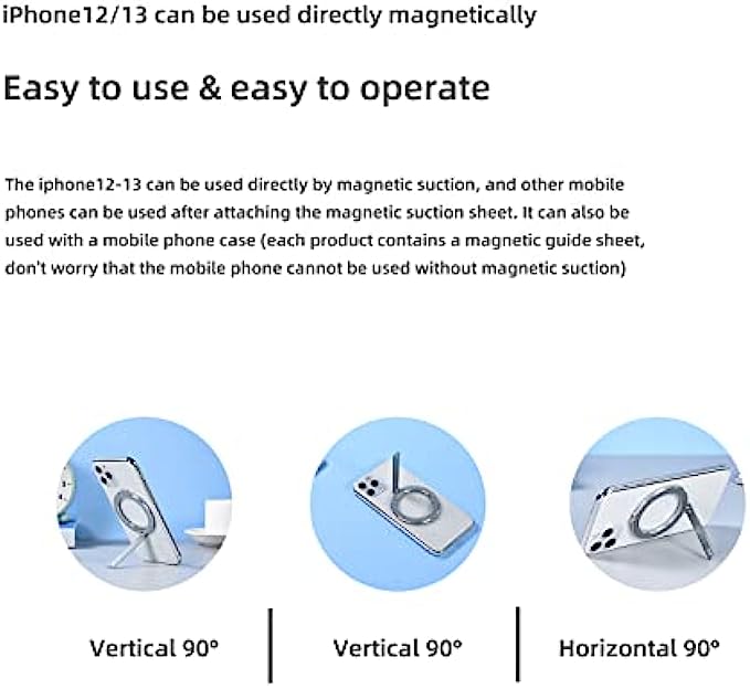 Lightweight and strong magnetic. Made of high quality aluminum alloy with built-in strong magnet. So it can stick tightly to your iPhone 13/12 series. Please note (long-term direct magnetic attraction of the mobile phone may wear the surface of the mobile phone: 1. It is recommended to use it with a magnetic mobile phone case 2. It is recommended to use it with a magnetic suction sheet)