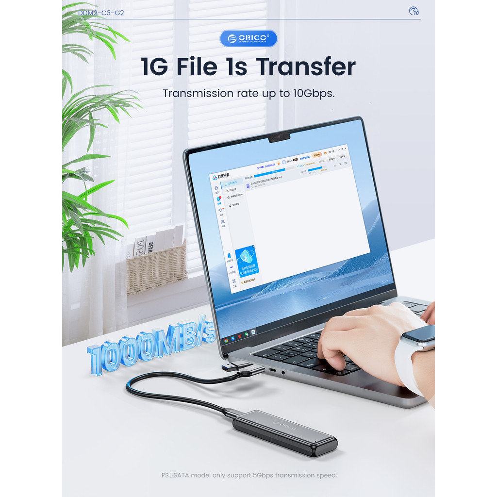 ORICO M.2 NVMe/SATA SSD Enclosure 10Gbps Tool Free M2 SSD Aluminum Enclosure Solid State Drive Case Laptop Computer Accessories (DDM2)
