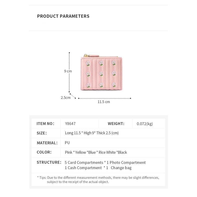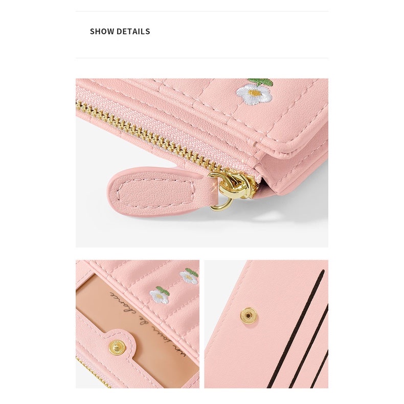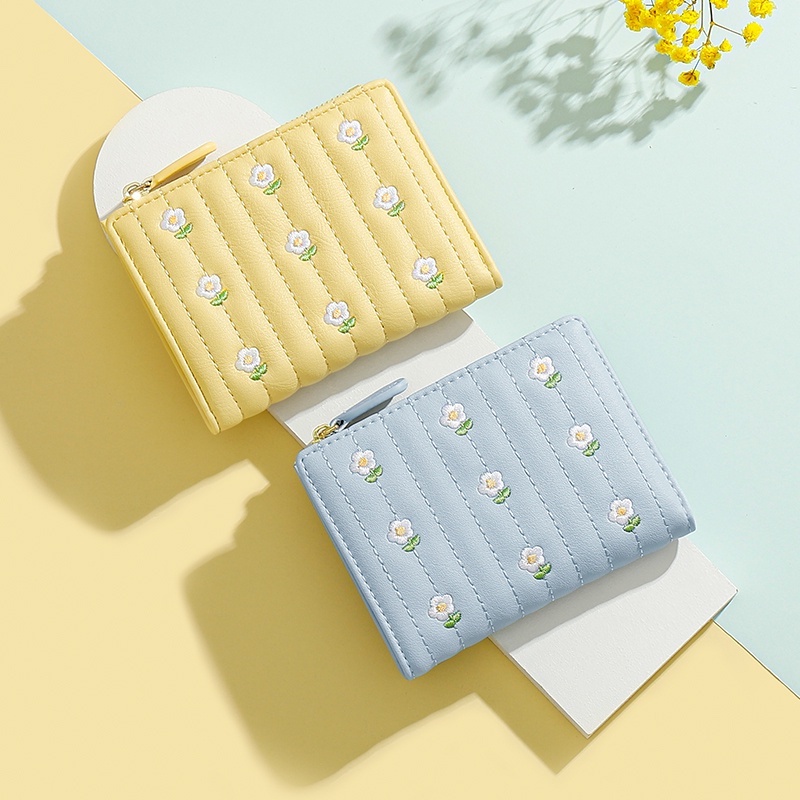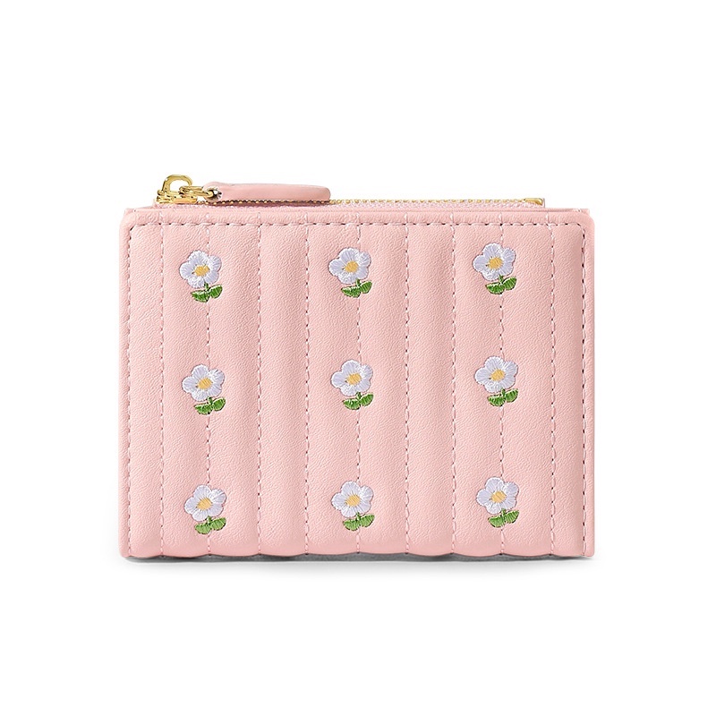 Wallet Women Korean Cute Embroidered Ladies Purse Bifold Simple Short Coin Card Holder