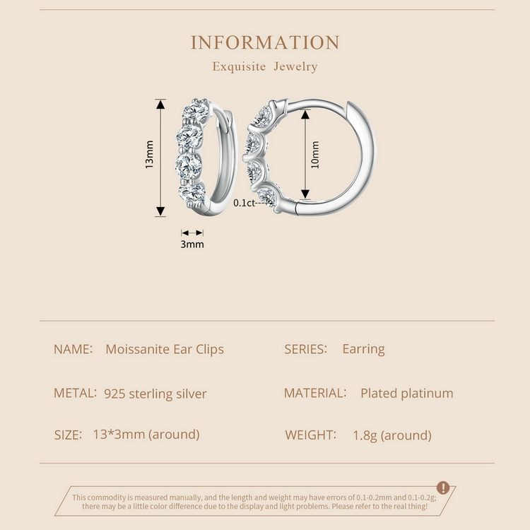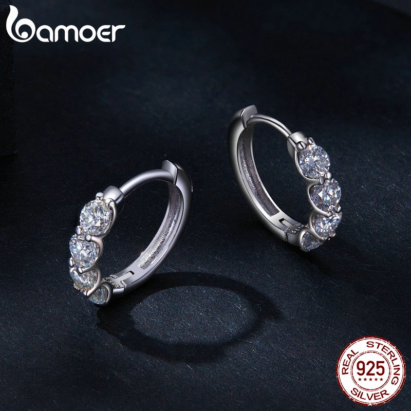Bamoer 925 Silver D-Color Moissanite 0.1 Karat Classic Six-Claw Diamond Earbuckle for Women