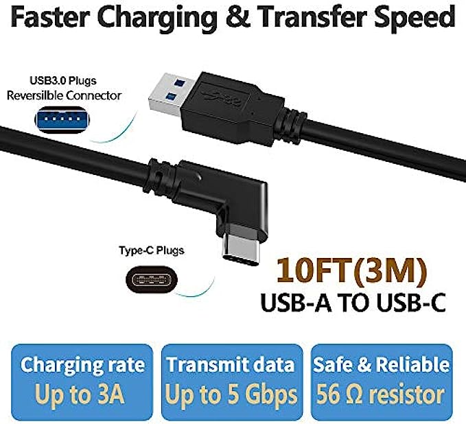 Compatible with Oculus Link Cable 10ft, DHH USB 3.2 Gen1, USB C to A, High Speed Data Transfer & Fast Charging Cable Compatible for Quest2 /1 Headset to a Gaming PC