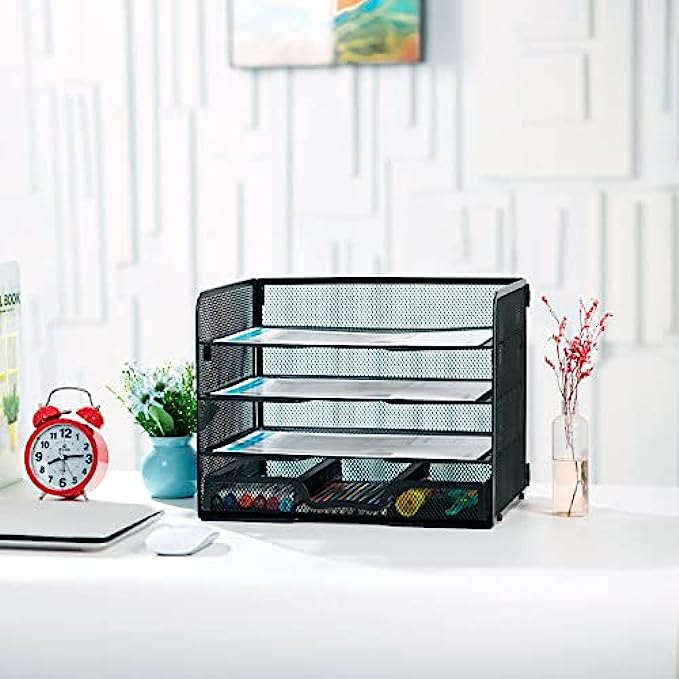 【Multifunctional Design】: The desk file organizer comes with a drawer tray. The drawer trays are used to store office stationery such as pens, pencils, glue sticks, staplers, etc.
