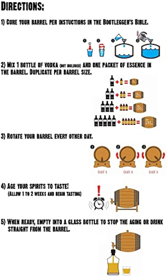 Check out our other essence flavors from our spirit making Bootleg Kits; Kentucky Bourbon, Small Batch Bourbon, American Rye Whiskey, Blended Whisky, Canadian Rye Whiskey, Pot Sill Whisky, Absinthe, Port, Wine, Orange Brandy, Texas Corn Whiskey, Barley Whisky and many more…